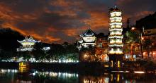 下午安排:乘車赴【芙蓉古鎮(zhèn)】(贈(zèng)送門票、景區(qū)環(huán)保車和酉水畫廊已含),山水如畫,多情的酉水養(yǎng)育了世世代代的土家兒女,也造就了沿岸動(dòng)人的風(fēng)光,酉水畫廊納含著芙蓉鎮(zhèn)的草木、山水、人兒,一道道美麗的彩虹是它編織的最美西蘭卡普。這里得酉水舟楫之便,上通川渝,下達(dá)洞庭,素有“楚蜀通津”之稱。因謝晉執(zhí)導(dǎo),劉曉慶、姜文主演的電影《芙蓉鎮(zhèn)》在此取景而出名,于是人們便把此地叫做芙蓉鎮(zhèn)。時(shí)代變遷,歷久彌新,更因其獨(dú)特的原始人文,靜謐山水成為新時(shí)代湖南旅游新寵。芙蓉古鎮(zhèn)大瀑布,酉水碼頭繁華依舊!乘車赴神秘湘西深處鳳凰古城,這里被譽(yù)為遠(yuǎn)去的家園,夢(mèng)中的故鄉(xiāng),邂逅邊城的燈火闌珊,品味獨(dú)特的夢(mèng)里苗疆。游覽被新西蘭著名作家路易艾黎稱贊為中國最美麗的小城--【鳳凰古城】,體驗(yàn)和感受鳳凰古城的九大精華:一座青山抱古城、一泓沱水繞城過、一條紅紅石板街、一道風(fēng)雨古城墻、一座雄偉古城樓、一個(gè)美麗彩虹橋、一排小橋吊腳樓、一批聞名世界的人、一個(gè)國家級(jí)非遺文化遺產(chǎn)!