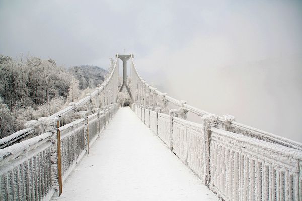 決定去天門山,一個(gè)很重要的原因就是想坐一下這個(gè)世界第一的索道——長7000多米,高1000多米,從市內(nèi)直接就到了天門山頂,既刺激又輕松。一大早到了索道站,天門洞景區(qū)由于下雪封路沒法游覽,256的票價(jià)減少到225,連最著名的景點(diǎn)都去不了,看來真是來坐長途索道了。