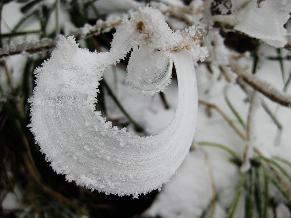 這簡直是童話世界!一個(gè)晶瑩剔透的琉璃國?。。〔还獍硾]見過,俺那東北的兄弟也沒見過。所有走出來的人都是先張大嘴巴哦然后再翹起來哇。沒錯(cuò),沒有人會(huì)料到可以看到這番景致。一切都是驚人的白色。所有的植被都被套上冰雪鎧甲,摸上去是一層霜包裹著一層冰,在氤氳彌漫中透露出不同的姿態(tài)。濃濃的白霧把遠(yuǎn)處的山和近處的懸崖全都隱蔽起來,像是漂浮的云端之城。俺當(dāng)時(shí)想到的就是這倆俗字:仙境。著名歌手李娜同志的別墅就在索道大廳門口,當(dāng)然現(xiàn)在已經(jīng)人去樓空。那是肯定的,在這出家必然是不得安寧了。