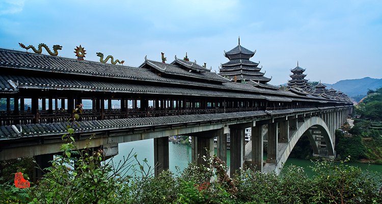 風(fēng)雨橋(又稱“花橋”)橫跨溪流,既是交通要道,也是侗族人乘涼、對歌、社交的場所,橋身雕刻精美,充滿藝術(shù)氣息。