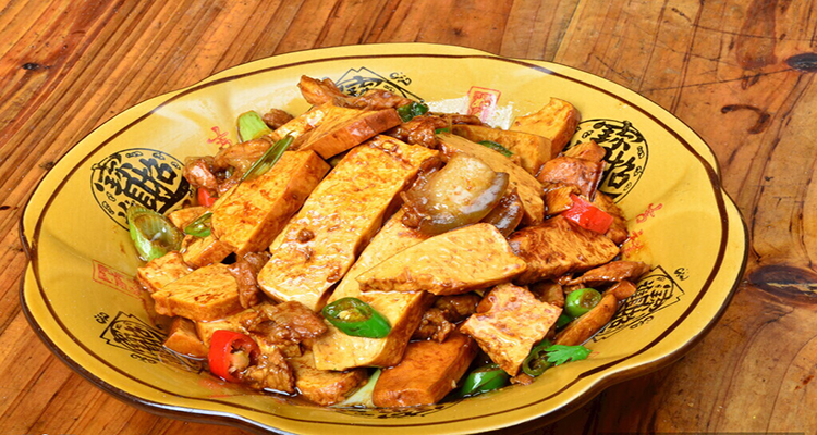 黃燜溈山豆腐是湖南省株洲市的一道特色名菜,以其醇厚的口感和獨(dú)特的制作工藝而備受食客們的喜愛。這道菜選用當(dāng)?shù)貎?yōu)質(zhì)的溈山豆腐為主要原料,制作過(guò)程中不添加任何雜質(zhì),僅僅依賴著溈山的山泉水,承天地之精華,聚自然之靈氣。經(jīng)過(guò)烹調(diào)后,豆腐表面金黃酥脆,內(nèi)里嫩滑可口,散發(fā)出誘人的香氣。