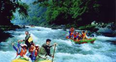 被譽(yù)為“中國生態(tài)第一漂”,位于東江湖最南端的黃草鎮(zhèn)境內(nèi),全程26千米。從龍王廟起漂點(diǎn)到燕子排終漂點(diǎn)整個(gè)落差75米,急灘108個(gè),漂流河道兩巖有保存比較完好的原始次森林,奇巖怪石林立,古樹遮天蔽日,老藤攀崖附壁,飛鳥跳躍枝頭。東江漂流以其灘多浪急落差大、水碧石怪魚奇怪、兩岸森林植被佳而 聞名,是國內(nèi)目前最具探險(xiǎn)的融歷險(xiǎn)、探幽、獵奇、拾趣為一體的漂流去處。