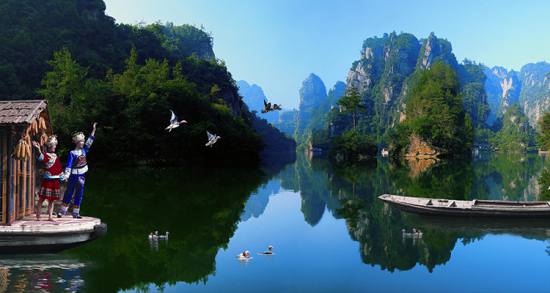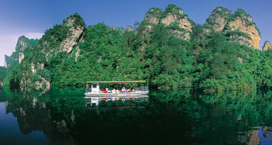 世界自然遺產(chǎn)------寶峰湖:被稱(chēng)為“世界湖泊經(jīng)典”,地處張家界武陵源風(fēng)景名勝區(qū)的核心地帶,距天子山8KM,距武陵源區(qū)政府1.5KM,距黃龍洞8KM。寶峰湖風(fēng)景區(qū)集山水于一體,融民俗風(fēng)情于一身,尤以奇秀的高峽平湖絕景、“飛流直下三千尺”的寶峰飛瀑、神秘的深山古寺聞名。