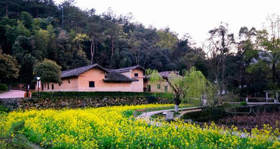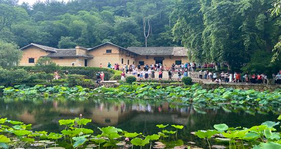 滴水洞在毛澤東故居以西約4公里處,是一個三面環(huán)山,一面以一小山澗作為出口的狹窄谷地,長約兩三公里,寬約05公里。由于谷深青幽,猶似一洞,山上一泉水從巖石滴下,故稱“滴水洞”,俗稱“吊水洞”。這里竹木繁茂,山澗流水潺潺,四季鳥語花香。特別是盛夏,這里氣溫比谷外低了3—5℃,是避暑療養(yǎng)的好處所。這里原為毛澤東祖父的居住地,山洞西北的一個山嘴,傳說過去常有老虎在此歇息,故曰“虎歇坪”,現(xiàn)有兩只臥虎石雕。